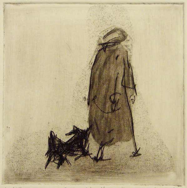 This small etching is based on one of the street sketches I used to do, sitting in the window of my shop.